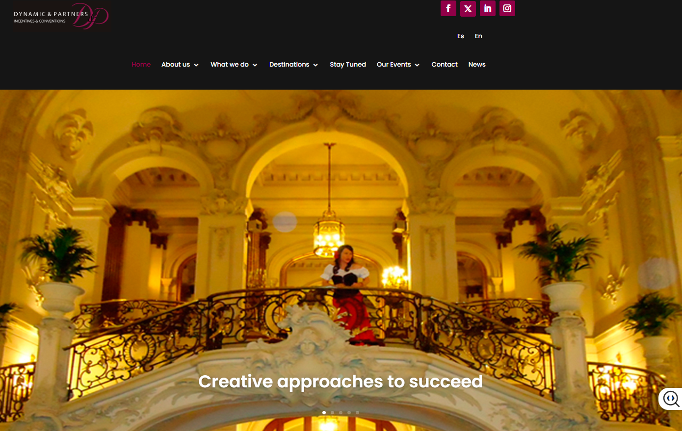 Diseño y desarrollo de la web corporativa de Dynamic Partners, agencia de gestión de eventos en España. Creamos una plataforma moderna, clara y adaptable que refleja su profesionalidad y facilita la conexión con clientes internacionales.